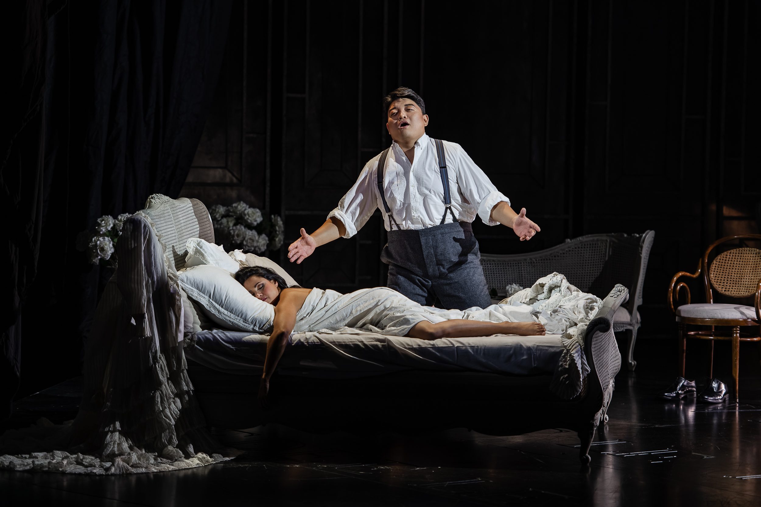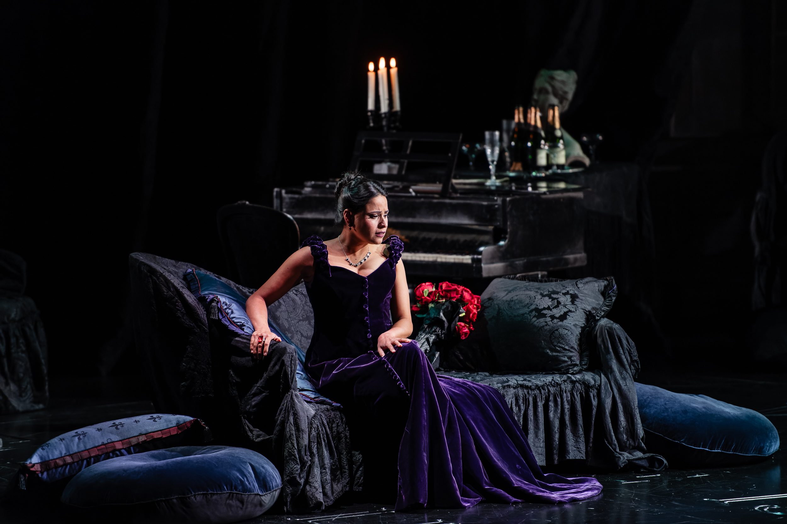 Always the belle of the ball, Violetta, the most elegant courtesan in all of Paris, has her choice of wealthy admirers falling at her feet. She lives for the glamorous lifestyle of high society, but when she finds herself deeply in love with the penniless aristocratic poet Alfredo, she is willing to give everything up for him. Can she be accepted just as a woman who has fallen in love, or is she to remain a ‘fallen woman’ whose love has no future?